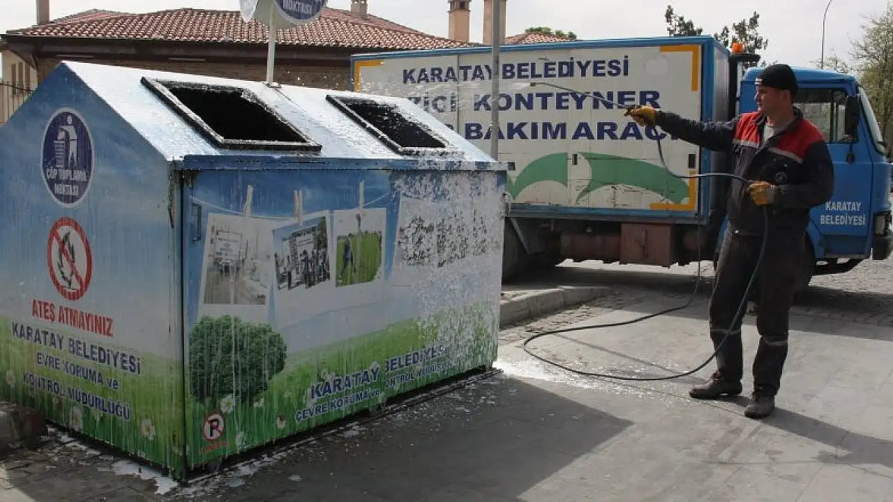 Uzman ekipler tarafından insan ve çevre sağlığına zararsız kimyasallarla dezenfekte işlemleri gerçekleştirilen çöp konteynerleri ve çöp aracı kasalarının temiz olmasının önemine değinen Çevre Koruma ve Kontrol Müdürlüğü yetkilileri; belediye bünyesinde hizmet veren gezici konteyner yıkama, tamir ve dezenfekte aracı ile çöp konteynerlerinin hem temizlendiğini hem de bakımının yapıldığını belirtti. Yetkililer, Karatay'ın daha da düzenli ve temiz görünümünü ve halk sağlığını korumak için şehir yaşamının vazgeçilmez bir parçası olan kent temizliği ile ilgili çalışmaların koordineli bir program doğrultusunda sürdürmekte olduklarını söyledi.