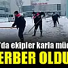 Karatay Belediyesi yoğun kar yağışı nedeniyle ilçede kar temizliği çalışması yürüten personele sahlep ikramında bulundu. Karatay Belediye Başkanı Hasan Kılca, Karatay’ın her bölgesinde kar ve tuzlama çalışması yaparak vatandaşların ulaşımını kolaylaştıran mesai arkadaşlarına teşekkür ederek seferberlik halinde sahada olduklarını söyledi. Hafta sonundan itibaren etkili olan yoğun kar yağışı nedeniyle çalışmalarını aralıksız sürdüren Karatay Belediyesi ekipleri, karla mücadele çalışmaları kapsamında kaldırımlardaki, cadde ve sokaklardaki karları temizleme çalışmalarına devam ediyor. Karatay Belediyesi bu kapsamda soğuk havalarda kar temizleme çalışanlarını unutmadı. Karatay Belediyesi Fen işleri Müdürü Bahattin Totan yoğun kar yağışında ilçede temizlik çalışması yürüten personele sıcak sahlep ikramında bulundu.