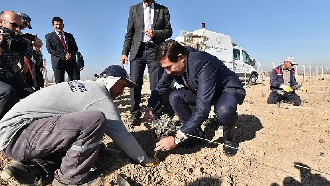 Karatay Belediyesi Park ve Bahçeler Müdürlüğü ekiplerinin lavanta fidesi dikim çalışmalarına katılarak lavanta diken Başkan Hasan Kılca, oluşturdukları Lavanta Bahçesi’ne 100 bin lavanta fidanı ekileceğini belirtti.
