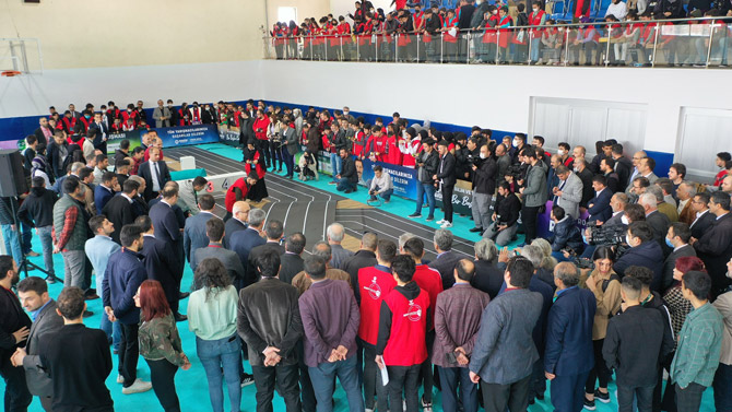Kütüphane açılışının ardından protokol üyeleri, 412 ortaokul ve lise öğrencisinin yanı sıra 103 danışma öğretmenin katıldığı yarışmada ter döktü.