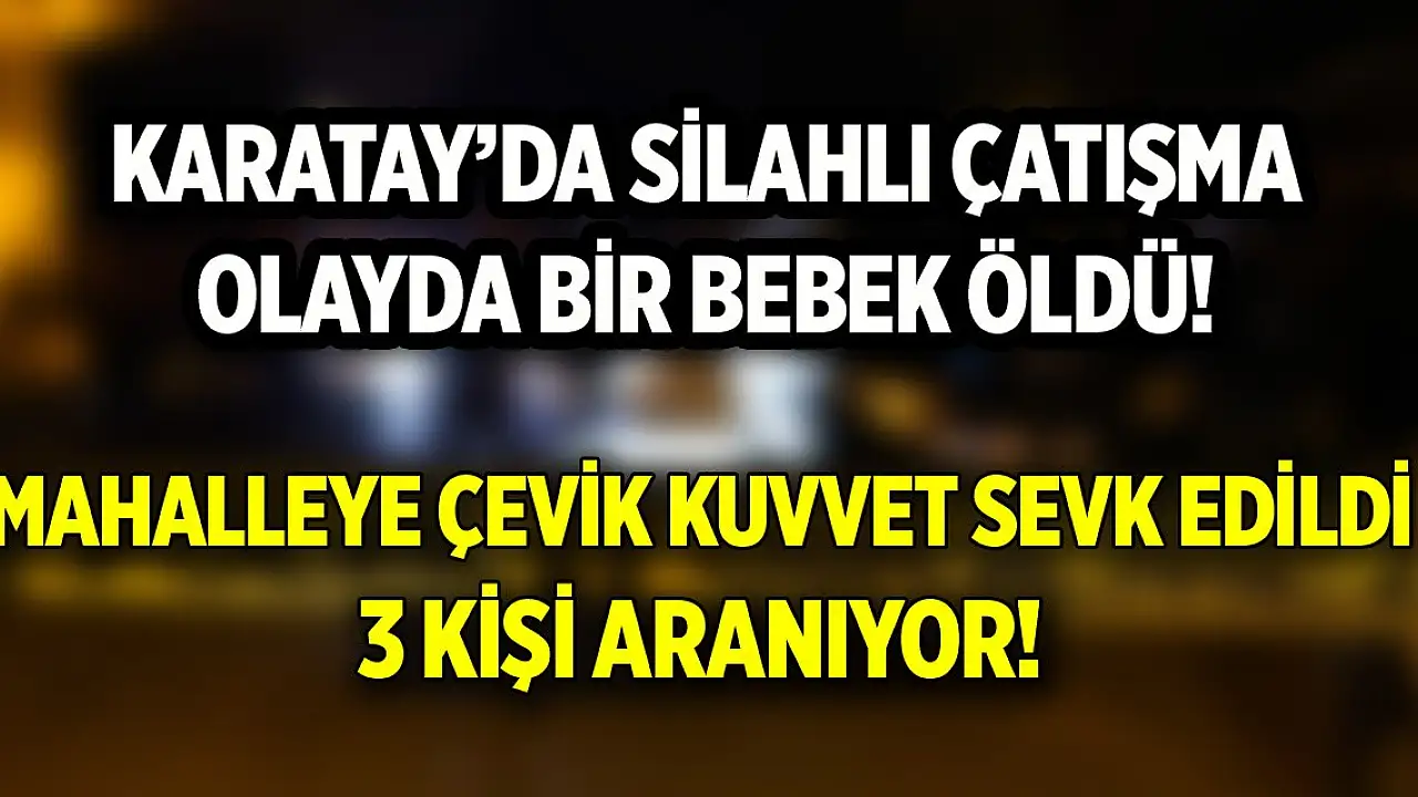 Karatay ilçesi Şems-i Tebrizi Mahallesinde yaşanan silahlı çatışmada 5 yaşındaki bebek öldü, 2 kişi yaralandı. Olay yerine çevik kuvvet ekipleri sevk edildi.