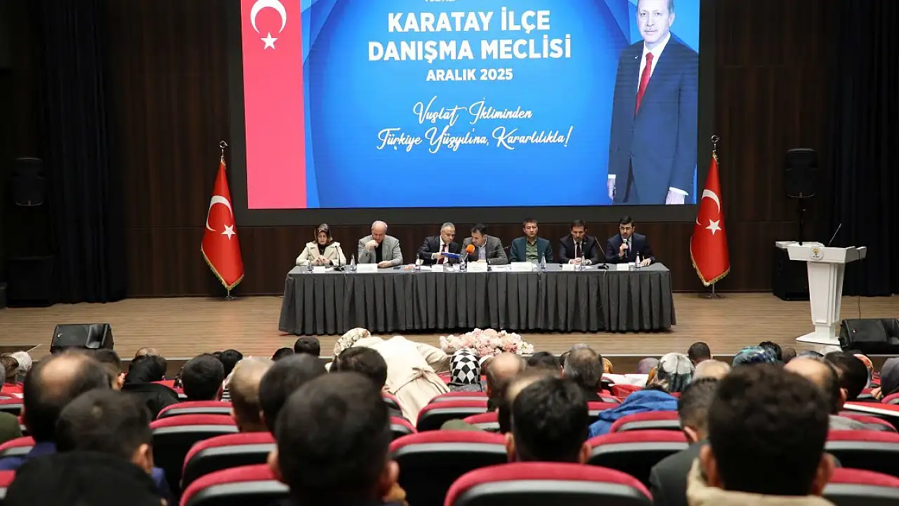AK Parti Karatay İlçe Teşkilatı, 'Vuslat İkliminden Türkiye Yüzyılı'na Kararlılıkla' sloganıyla Aralık 2025 İlçe Danışma Meclisi Toplantısı'nı yoğun katılımla gerçekleştirdi.