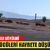 Karayolunda görülen domuz sürüsü sürücüleri hayrete düşürdü