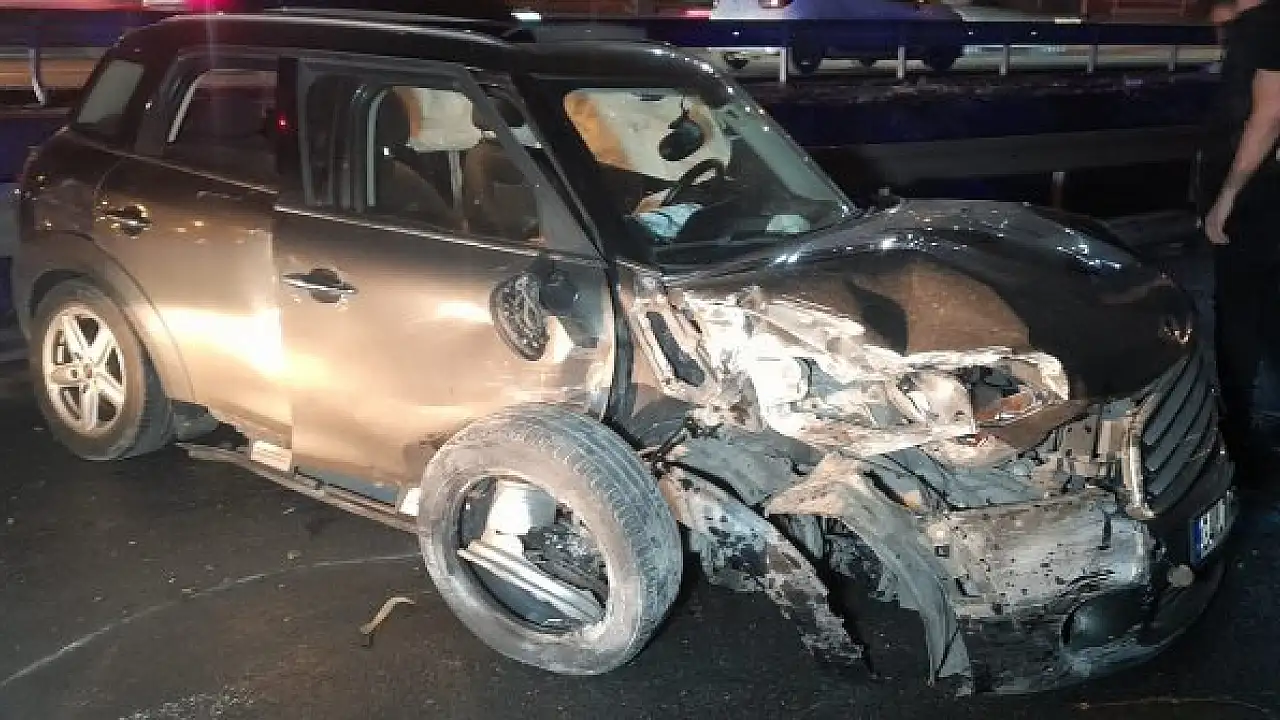 Karayolu'nda otomobil önce bariyere ardından hafif ticari araca çarptı