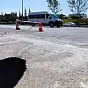 Karayolunun kenarında oluşan dev çukur görenleri korkuttu
