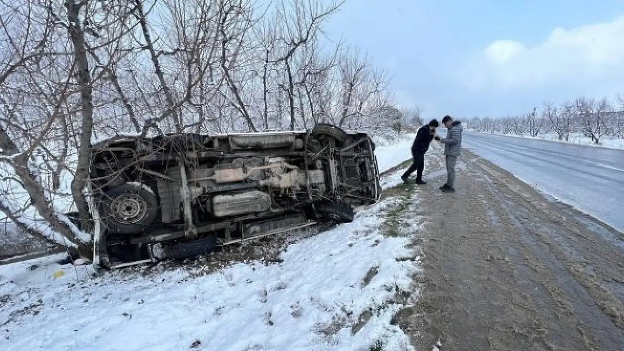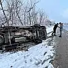 Bursa'nın İznik ilçesinde kar yağışından dolayı bir araç şarampole yuvarlandı. Devrilen aracın sürücüsü kazadan yara almadan kurtuldu.