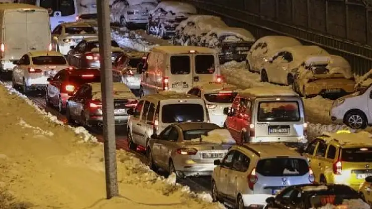 İstanbul'da etkili olan kar yağışının yolları kapatması nedeniyle araçlarının içinde mahsur kalan vatandaşların bekleyişi devam ediyor. İlçe belediye ekiplerinin yanı sıra İHH İnsani Yardım Vakfı ekipleri de mahsur kalanlara kumanya yardımı yapıyor.