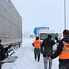 Samsun'da yoğun kar yağışında araçlarıyla yolda kalanlara kumanya dağıtımı yapılıyor.
