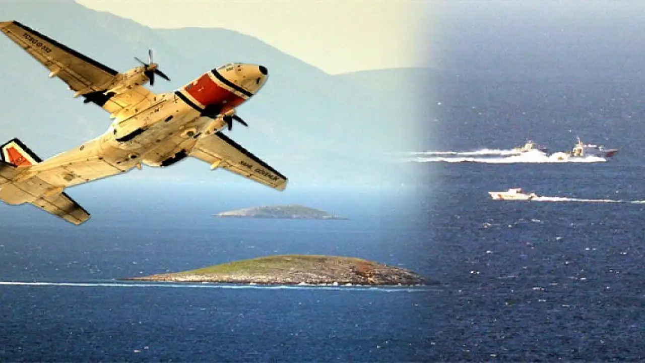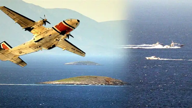 Sahil Güvenlik Komutanlığı'na ait uçak, Kardak kayalıklarının olduğu bölgede alçak uçuş yaptı. Türk Sahil Güvenlik güçlerine ait botu da bölgede nöbete devam ediyor.