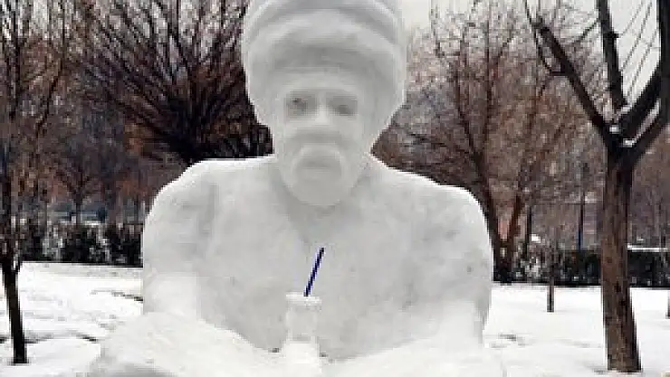 Kayseri'de Mimar Sinan Parkı içerisine yapılan kardan Mimar Sinan heykeli, görenlerin dikkatini çekiyor.