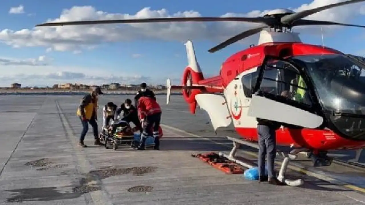 Mezra yolunun kar nedeniyle kapalı olması yüzünden Van'da konuşlu bulunan Sağlık Bakanlığına ait ambulans helikopter bölgeye yönlendirildi.