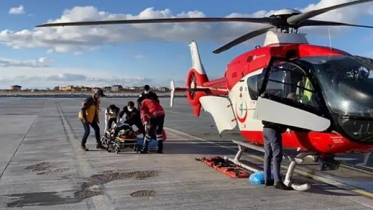 Kardan yolu kapalı mezradaki hastaya ambulans helikopterle ulaşıldı