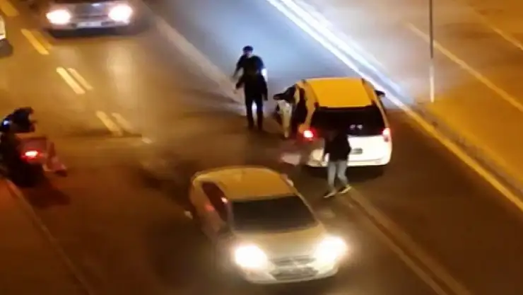 BEYLİKDÜZÜ'nde, kardeşine laf attığı iddia edilen kişilere küfürler savuran ağabey, şüphelilerin kaçarken aracına çarpmaları üzerine sopayla otomobilin camlarına vurdu. O anlar cep telefonu kamerasına yansıdı.