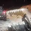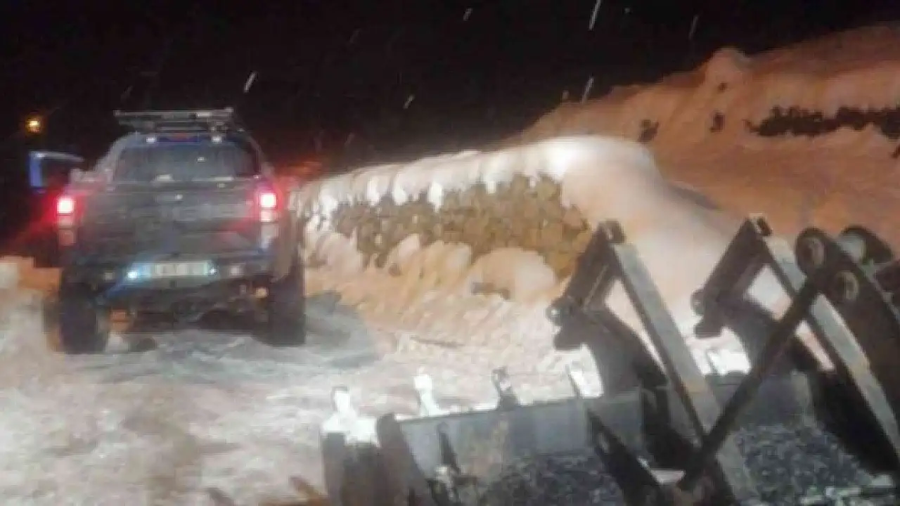 Karla kaplı yolda araç içinde mahsur kaldılar