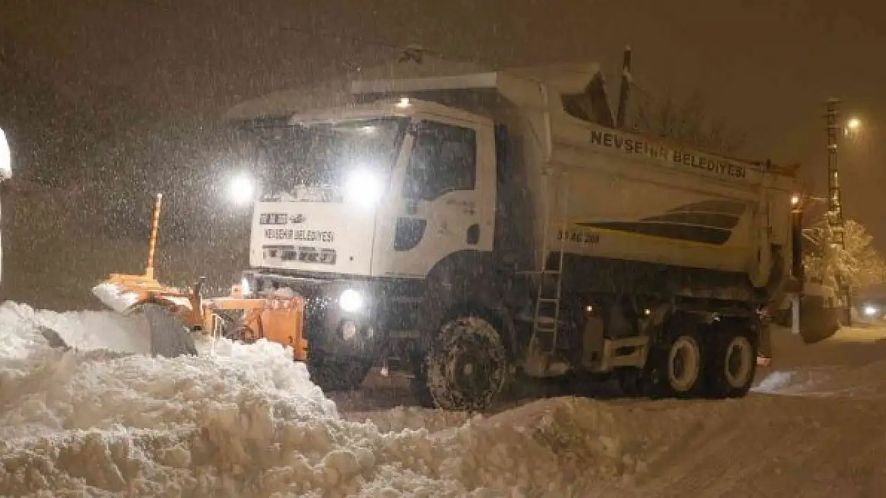 Nevşehir'de etkili olan kar yağışı dolayısıyla şehir içi ulaşımın aksamaması için belediye ekipleri kar küreme, temizlik ve tuzlama çalışmalarını sabaha kadar sürdürdü.