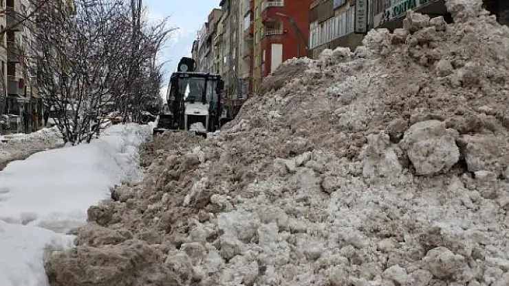 16 iş makinesi ve 40 personelin yer aldığı çalışmalarda, şehir merkezinde biriken kar yığınları kamyonlarla şehir dışına taşınıyor.
