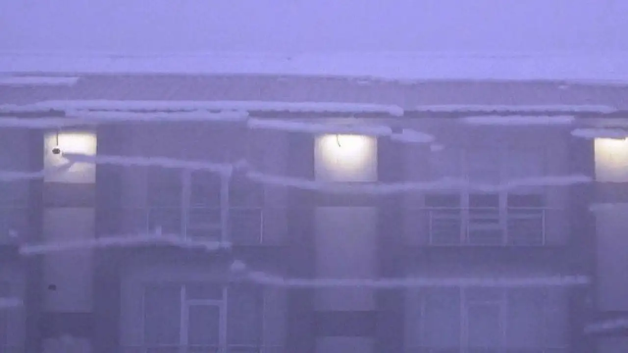 Bitlis'te 6 katlı binanın çatısında biriken kar kütlesi şelale gibi caddeye aktı. Saniye saniye görüntülenen olayda ölen ya da yaralanan olmadı.