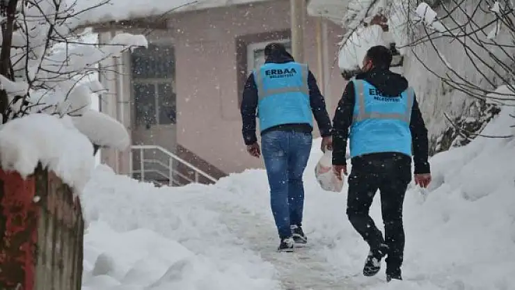 Erbaa Belediyesi Sosyal Yardım İşleri Müdürlüğü ekipleri kar yağışı sebebiyle evlerinden çıkamayan yaşlı ve bakıma muhtaç vatandaşlara her gün aşevinde pişirilen yemekleri ulaştırıyor. Ekipler vatandaşların evlerine kadar giderek sıcak yemek götürüyor. Erbaa Belediye Başkanı Ertuğrul Karagöl, yoğun kış şartlarında yalnız yaşayan, yaşlı ve bakıma muhtaç vatandaşlara belediye olarak destek olmaya devam ettiklerini ifade ederek, "Sosyal Yardım İşleri Müdürlüğü çalışanlarımız, aşevimizde yapılan yemekten her gün kendilerine sıcak yemek götürmekle beraber her türlü ihtiyaçlarını gidermek için de gayret sarf ediyorlar" dedi.