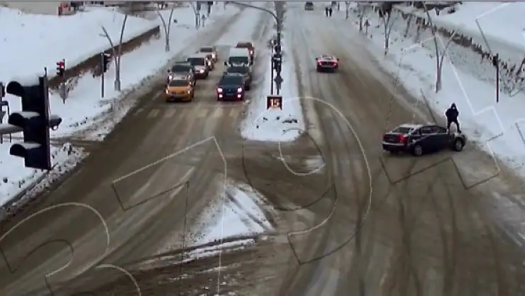 Emniyet Genel Müdürlüğü, Kent Güvenlik Sistemi kameralarına yansıyan görüntüleri paylaştı. "Biraz daha dikkatli olsalardı, bu kazalar olmayabilirdi" notuyla paylaşılan internet sitesinde yer alan görüntüde, karlı yolda sürücüsünün direksiyon hakimiyetini kaybettiği otomobilin yol kenarında yürüyen bir kişiye çarpma anı yer aldı.