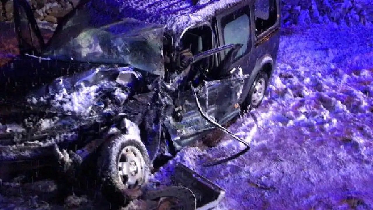 Karlı yolda midibüsle çarpışan hafif ticari araçtaki karı- kocayı ölüm ayırdı