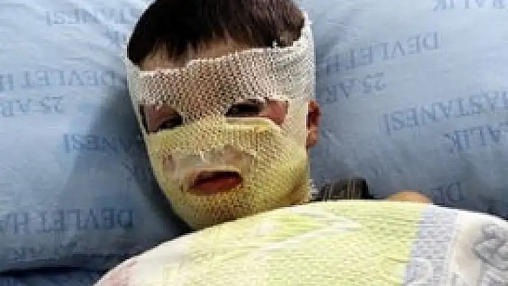 Suriye'nin Deyrizor kentinde Esed'e bağlı ordu birliklerinin 8 ay önce gerçekleştirdiği bombalı saldırıda yaralanan çocuğun yüzüne karnından alınan deri nakledildi.