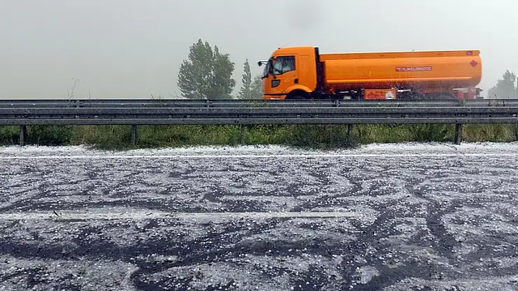 Fındık ve ardından ceviz büyüklüğünde yağan dolu, kara yolunu ve evlerin bahçelerini beyaz örtüyle kapladı.