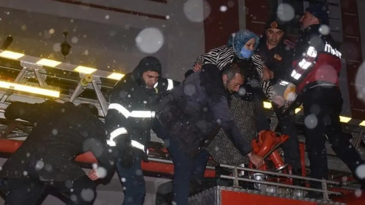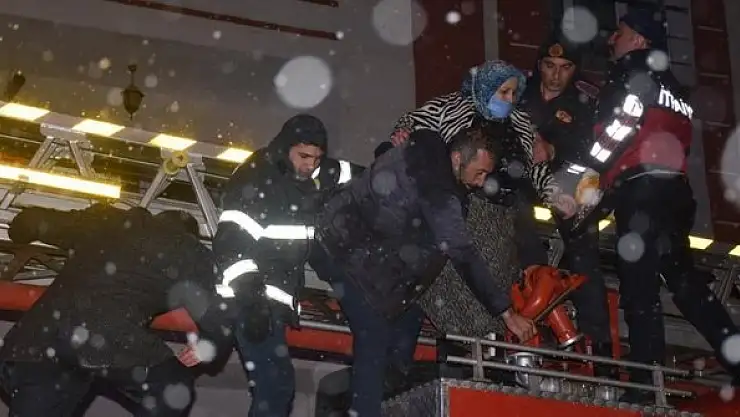 Ekipler, balkonlara merdiven uzattı. Mahsur kalanlar, ekiplerin kar yağışına rağmen sürdürdükleri yoğun çalışmayla kurtarıldı.