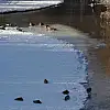 Kars'ta aşırı soğuklardan dolayı büyük çoğunluğu tamamen donan Kars Çayı'nın açık kalan bölgeleri yaban ördeklerine ev sahipliği yapıyor.