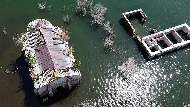 Bölgede son zamanlarda havaların sıcak gitmesiyle yeterli yağışı alamayan barajın su seviyesi düşünce, köydeki evler, cami, kilise ve bazı tarihi binalar gün yüzüne çıktı.