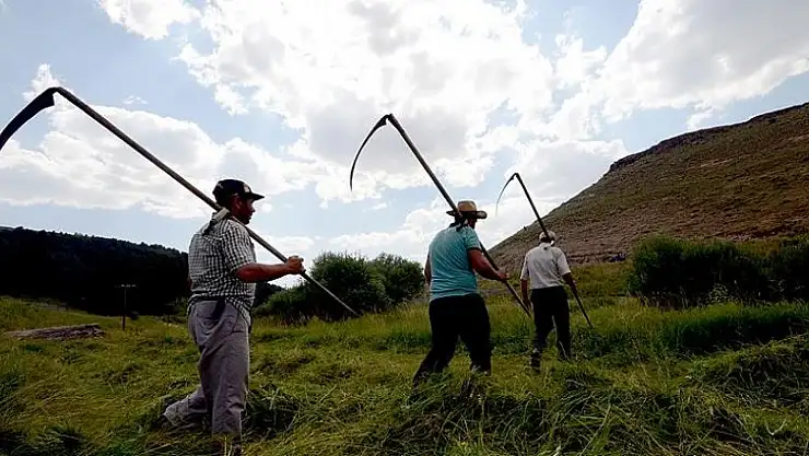 Zengin floraya sahip 2 bin 200 rakımlı kent merkezi çevresi ve köylerde yaşayan çiftçiler, yılın yaklaşık altı ayı ahırlarda beslediği küçük ve büyükbaş hayvanlarına kışın yedireceği otları biçiyor.