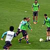 Dar alanda pas çalışmasıyla devam eden antrenman, taktik çalışma ve yarı sahada çift kale maçla sona erdi.