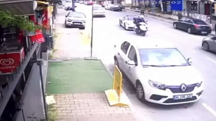 KARTAL'da caddede ilerleyen lüks otomobil, seyir halindeki motosikletliye çarptı. Kaza anı güvenlik kamerasına yansıdı.