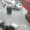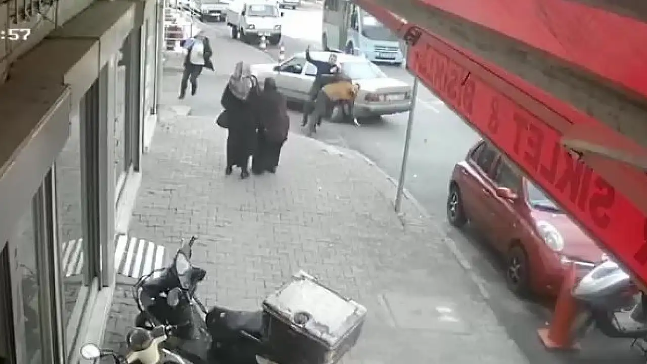 Öte yandan otomobilin iki kişiyi kıl payı teğet geçerek baklavacıya daldığı anlar güvenlik kamerasına yansıdı. Görüntülerde iki kişi yolda yürüdüğü sırada yanlarından hızla geçen otomobil yayaları kıl payı teğet geçiyor, ardından dükkana dalıyor.