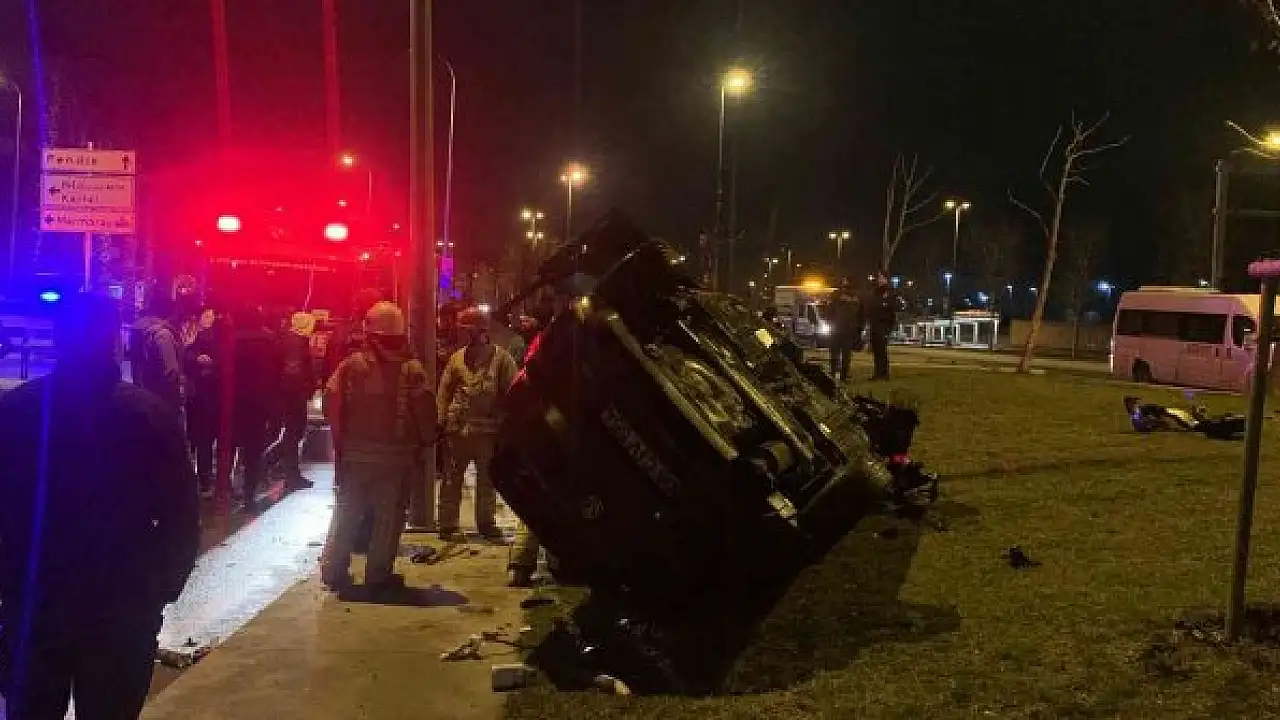 İstanbul Kartal'da aşırı hız yaptığı iddia edilen araç yoldan çıkıp takla attı.