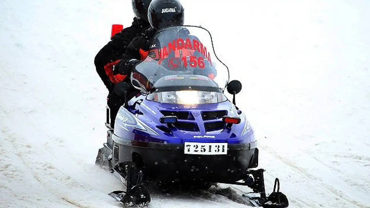 Ekipler, kar motorlarıyla Ramazanbey Deresi ve Gıcıgan Dere mevkisinde arama yapıyor.