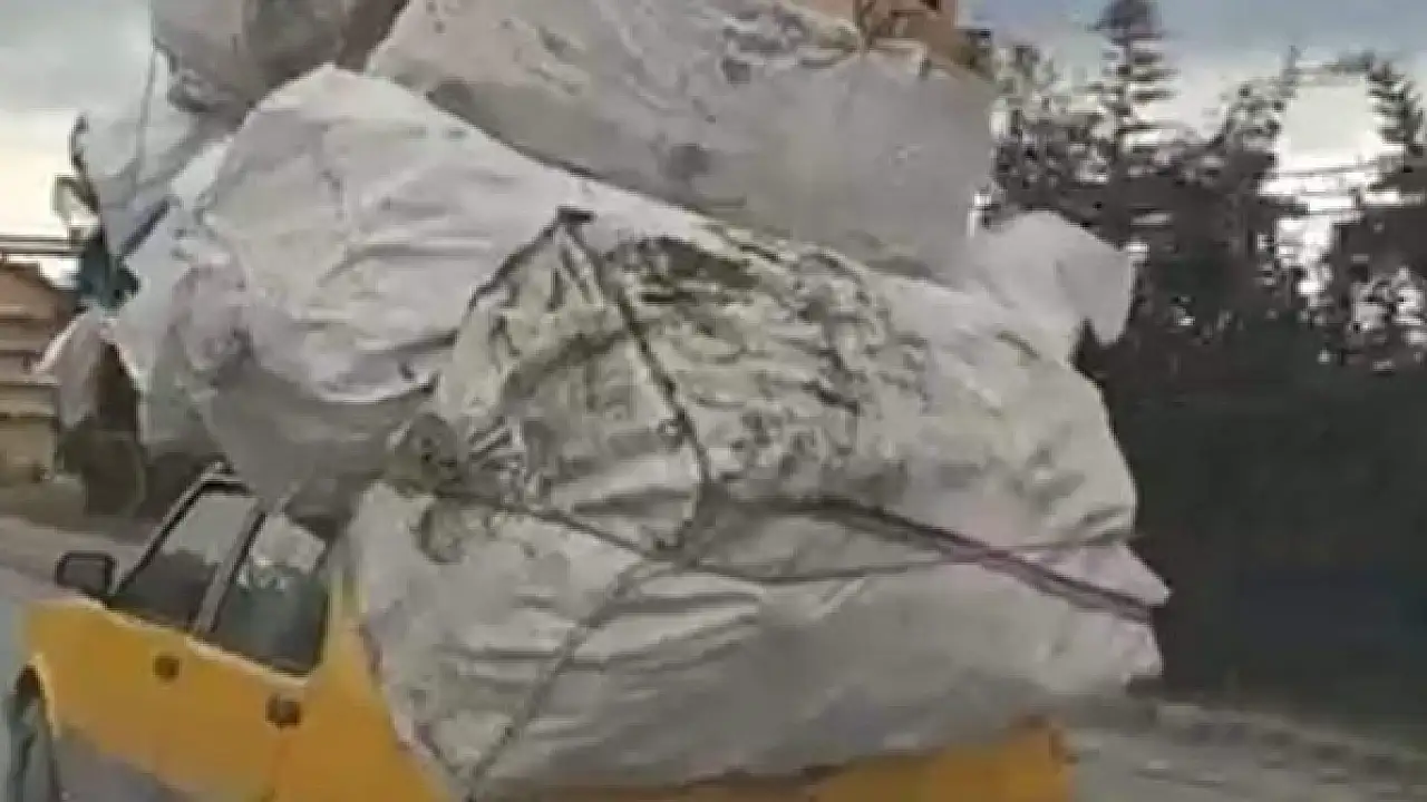 ZONGULDAK'ta geri dönüşüm için toplanan kartonları çuvallar içinde otomobiline yükleyip trafiğe çıkan sürücü, tepki çekti. O anlar cep telefonu kamerasına yansıdı.