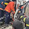 Karton gibi katlanan TIR'dan şoför yaralı kurtuldu