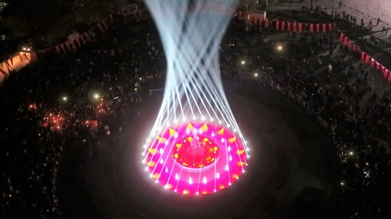 Kütahya'da yenilenen Zafer Meydanı'ndaki su ışıkları gösterisinin havadan çekilen görüntüleri adeta göz kamaştırdı.