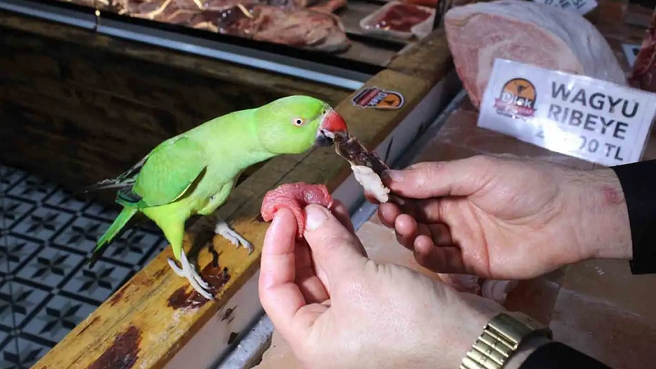 Kasabın papağanı, sadece 22 bin liraya satılan etten yiyor