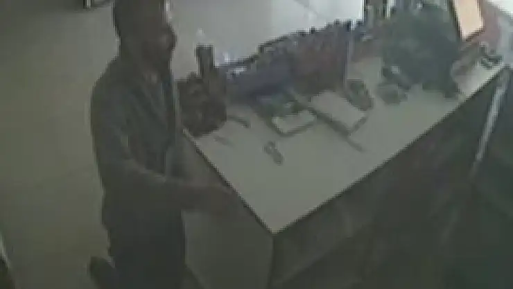 Konya'da, bir akaryakıt istasyonunun marketine giren şüphelinin hırsızlık anı güvenlik kamerasına yansıdı.