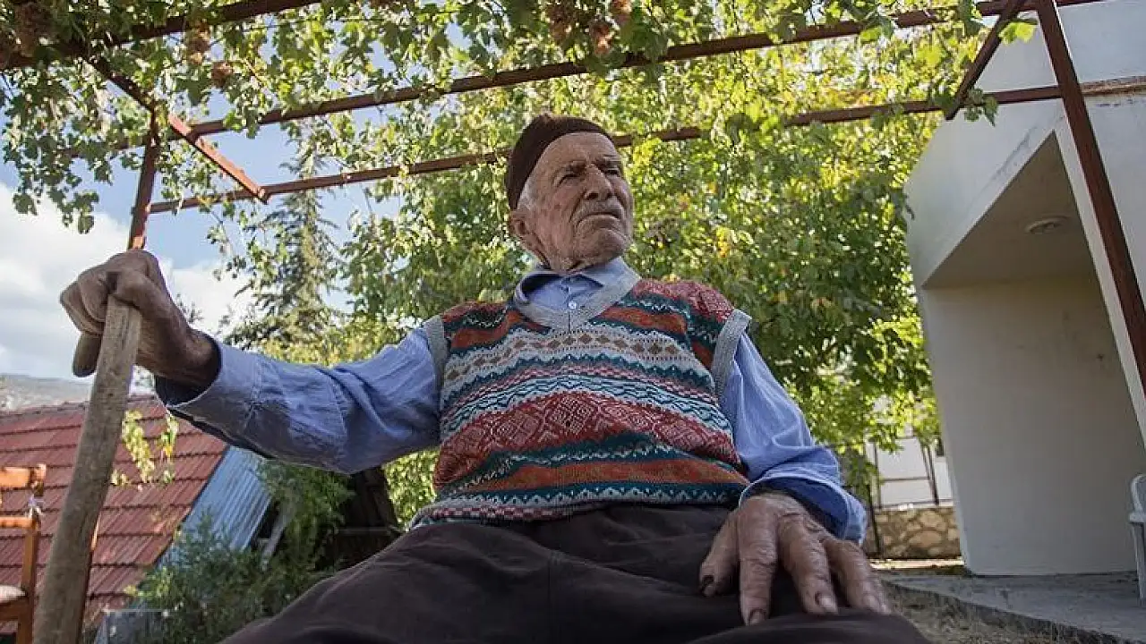 Antalya'nın Kaş ilçesinde geliniyle yaşayan 108 yaşındaki Ali Kocaer, asırlık yaşına rağmen hem bütün işlerini kendi görüyor hem de bahçesine bakmaya devam ediyor.
