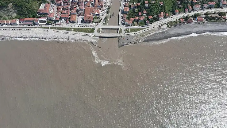 İlçe merkezinde İnebolu Çayı'nın taşıdığı çamur, Karadeniz'in turkuaz rengini değiştirdi. Çamurlu su, İnebolu kıyılarında denizin yüzeyini kapladı.