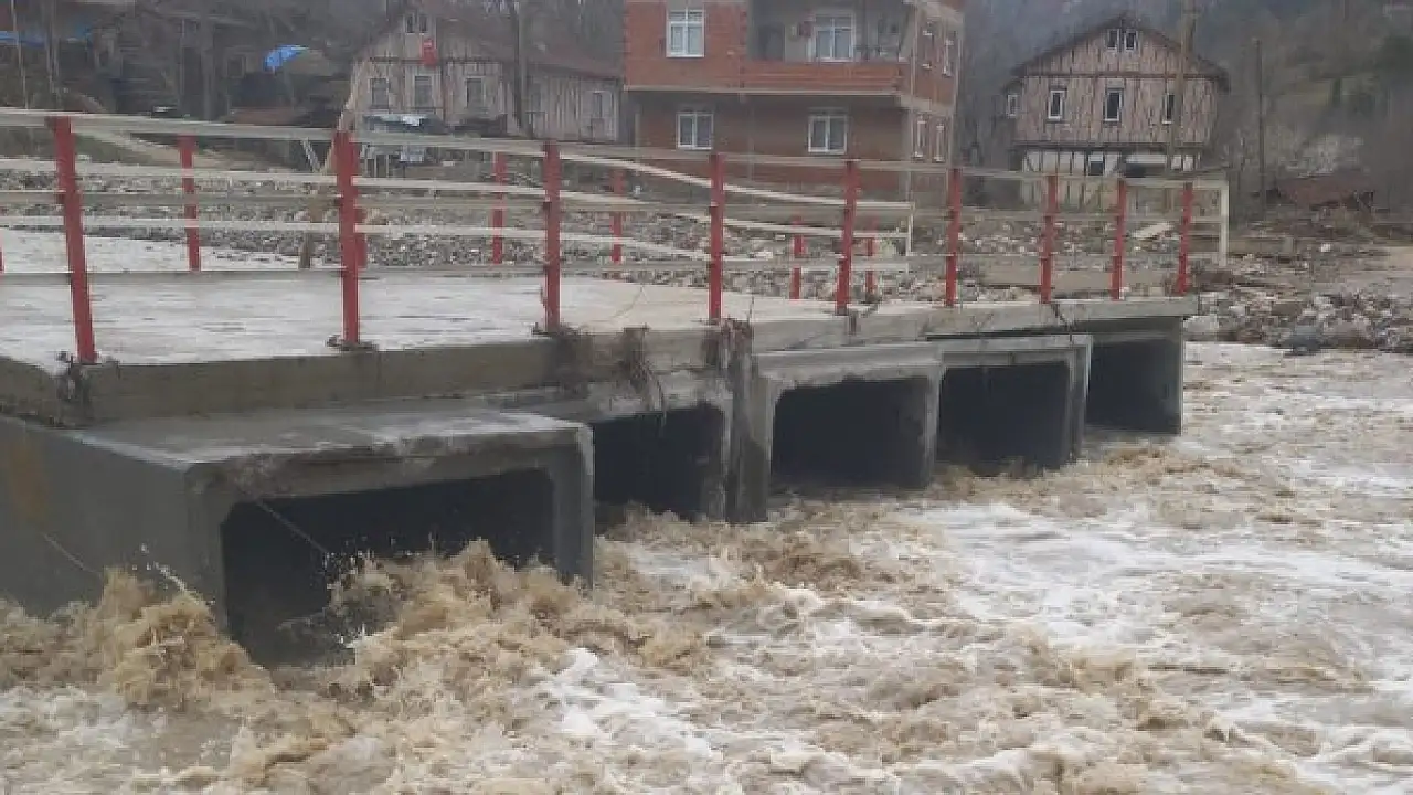 KASTAMONU'nun Küre ilçesinde sel felaketinin ardından yapılan geçici köprü, deredeki su seviyesinin yükselmesi nedeniyle yıkıldı.