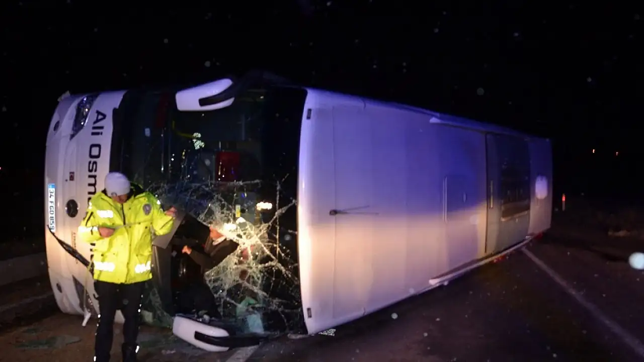 ANKARA'dan Sinop'a giden yolcu otobüsü, Kastamonu'nun Taşköprü ilçesinde sürücünün direksiyon hakimiyetini kaybetmesi sonucu karşı şeride geçerek devrildi.