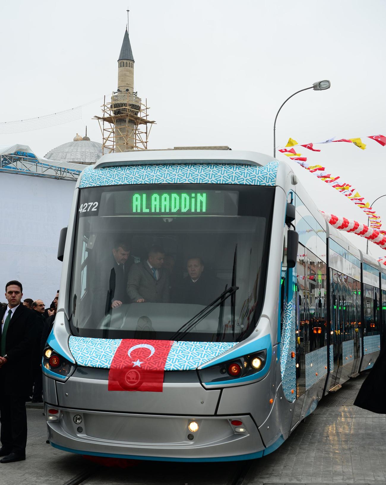 Konya Büyükşehir Belediye Başkanı Tahir Akyürek, Mevlana Kültür Vadisi içinden geçen Alaaddin-Adliye hattının şehrin tarihi dokusuna uygun olması için tarihi bölgede direklerin ve tellerin bulunmadığını belirterek, açılışını Cumhurbaşkanı Recep Tayyip Erdoğan’ın yaptığı hatta Türkiye’de ilk defa katanersiz tramvaylarla hizmet verdiklerini söyledi.