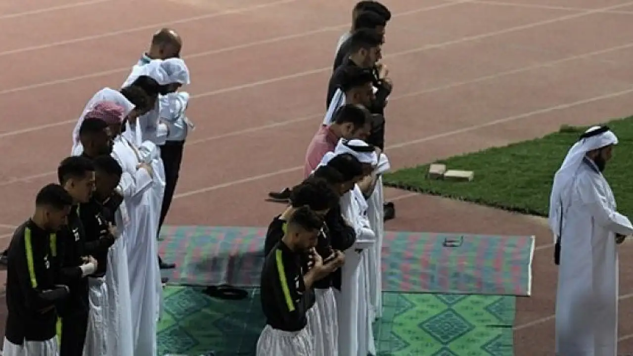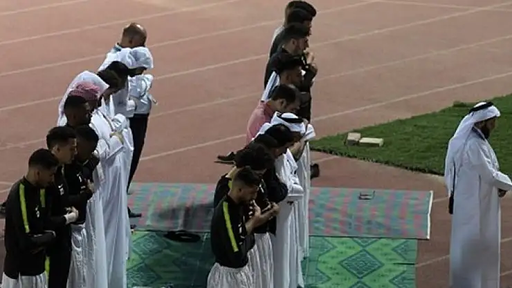 Oldukça önem arz eden mücadele öncesinde futbolcular ve teknik heyet saha kenarında cemaatle namaz kıldı ve akabinde dua etti.