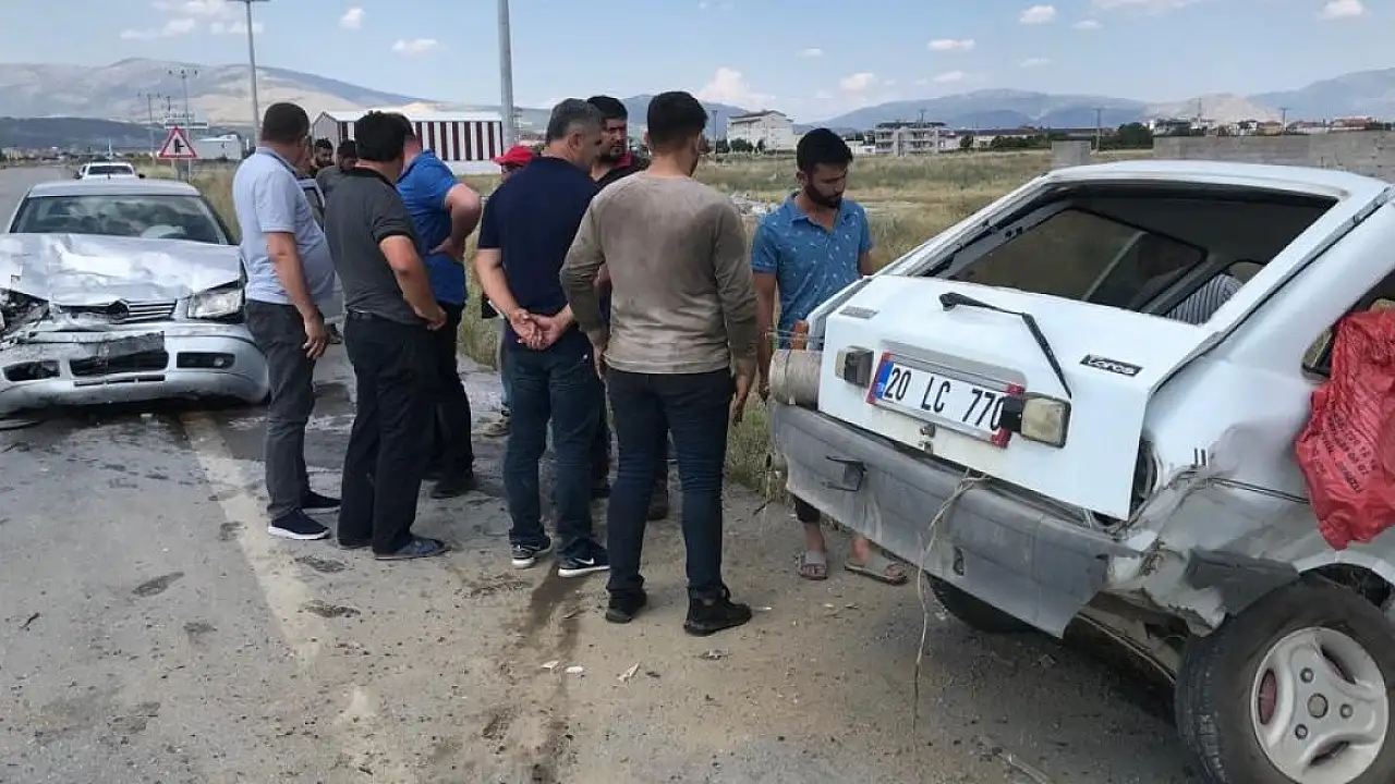 Kaza, Çivril ilçesi Uşak Yolu Sanayi Kavşağı olarak bilinen noktada meydana geldi. İddiaya göre, Denizli istikametinden Uşak istikametine seyir halindeki M.A. kontörlündeki 20 AGU 837 plakalı otomobil ile karşı istikametten gelen ve Sanayi Kavşağından dönmek isteyen S.Ş. idaresindeki 20 LC 770 plakalı otomobil dikkatsizlik sonrası çarpıştı. Çarpmanın etkisiyle S.Ş.'nin otomobili yoldan çıkarak tarlaya uçtu. İhbar üzerine bölgeye giden sağlık görevlileri, sürücüler ve anayolda duran otomobildeki yolcu konumunda bulunan kişiyi hastaneye kaldırdı.