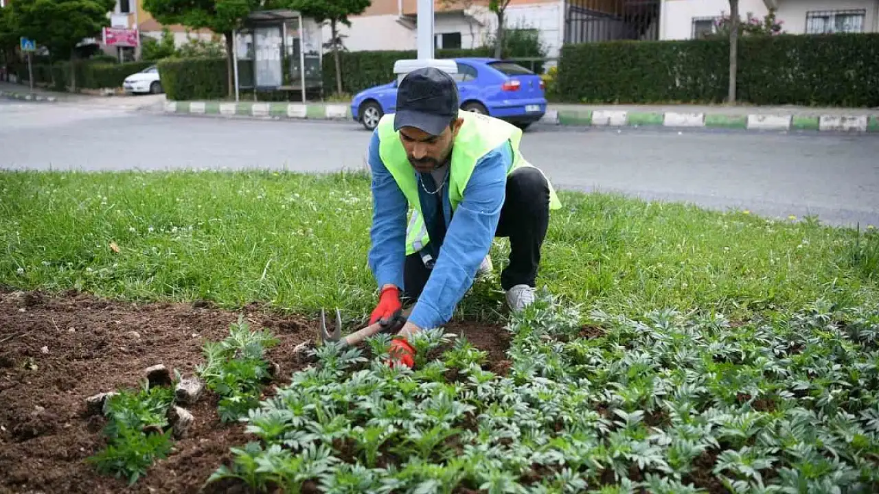 Çayırova Belediyesi Park ve Bahçeler Müdürlüğü'ne bağlı ekipler, yabani otların biçimi ve mevsimlik çiçek ekimi yaparak kavşakları güzelleştiriyor.