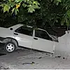 Kavşakta çarpışan araçlar bahçe duvarına daldı