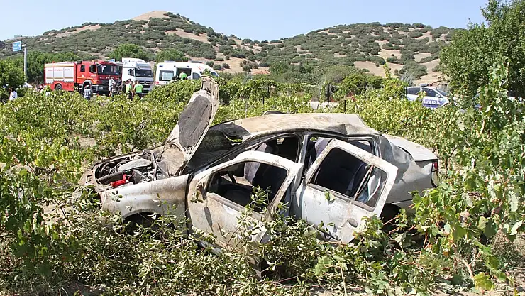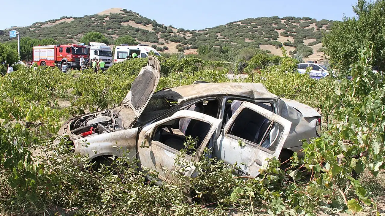 Manisa'nın Kula ilçesinde, kavşaktan kontrolsüz şekilde ana yola çıkan otomobile çarpmamak için sürücüsünün ani manevra yaptığı otomobil takla atarak tarlaya yuvarlandı.